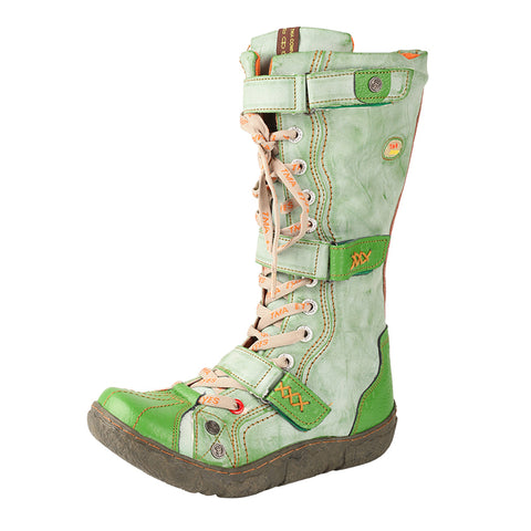 CHSHOER Retro Handmade Patchwork High - Top Boots with Lacing & Double Buckle - Green / 36